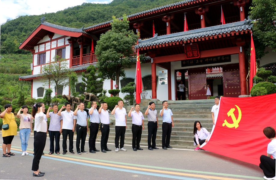 在教育基地,全体党员干部面对鲜红的党旗,高举右拳,铿锵有力地重温入党誓词,重忆申请入党时的思想激情和奋斗追求,回顾入党宣誓时的庄严承诺和坚定决心,增强党性意识,以更加饱满的热情发挥共产党员的先锋模范作用,永葆共产党员的政治本色。