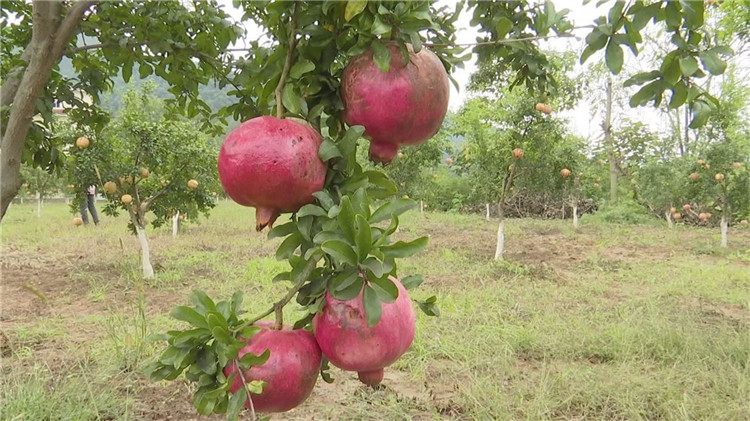 这是双河镇高坪社区种植的突尼斯软籽石榴,个头大,果汁丰满,随手剥开一个,晶莹剔透,鲜香四溢。园区里的农户们正忙着采摘、装筐,发给外地客户。