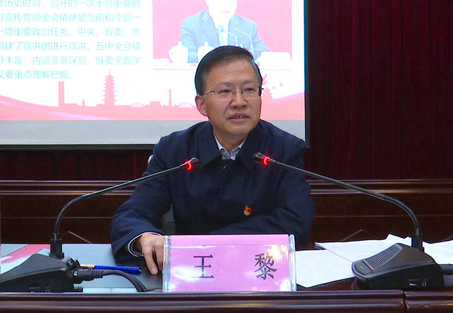 王黎从“充分认识,准确把握五中全会重大意义”、“充分认识,准确把握我国进入新发展阶段的重大意义、有利条件和重要特征”、“充分认识,准确把握2035年远景目标和‘十四五’时期我国发展的指导方针、主要目标、重点任务”、“充分认识,准确把握构建新发展格局的战略构想和重要着力点”、“充分认识,准确把握坚持党的领导,动员和凝聚各方面力量,全面实现“十四五”规划和2035年远景目标”五个方面,结合安康、旬阳的工作实际,对全会精神作了深刻阐述和全面解读。
