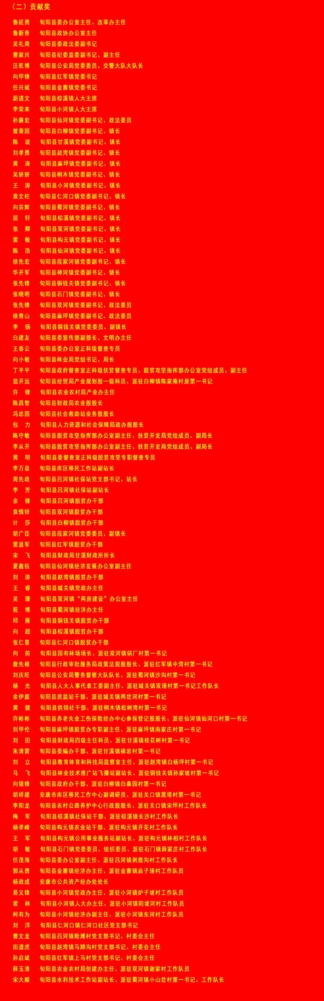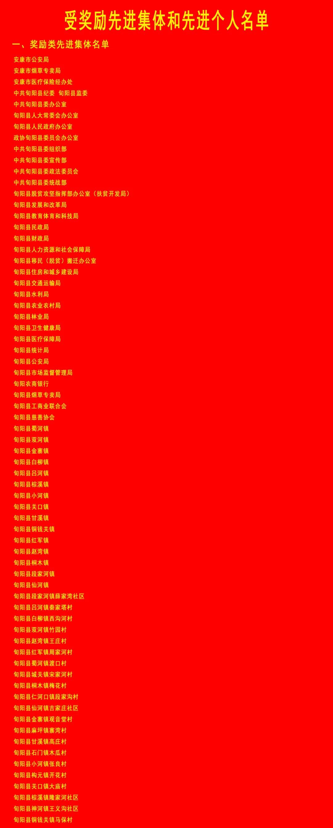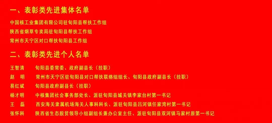12月23日,全市脱贫攻坚表彰奖励大会召开,旬阳县69个先进集体和126名先进个人在全市脱贫攻坚表彰奖励大会上获奖。