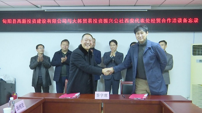 经过考察、研讨、洽谈,旬阳县高新投资建设有限公司与大韩贸易投资振兴公社西安代表处签订经贸合作洽谈备忘录,以共同促进中韩(旬阳)在拐枣深度研发、贸易合作、投资发展、旅游开发等方面取得深度合作和更大成果。