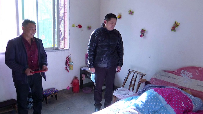 陈红星(右)看望困难群众梁提金(左)和患病的儿子