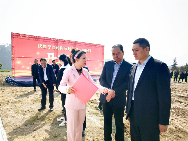 4月12日,陕西亨通铸造有限公司年产5万吨球墨铸件生产线二期技改项目开工,旬阳县县长陈红星、副县长王海彬出席开工仪式。
