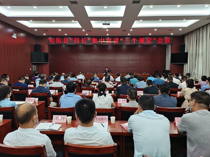旬阳县委和县级国家机关各部门、中央和省市驻旬各单位主要负责同志近百人参加宣讲会,并签订《严格遵守“三个规定”公开承诺书》。