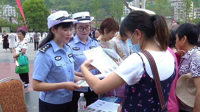 工作人员向市民宣讲安全知识、发放宣传资料