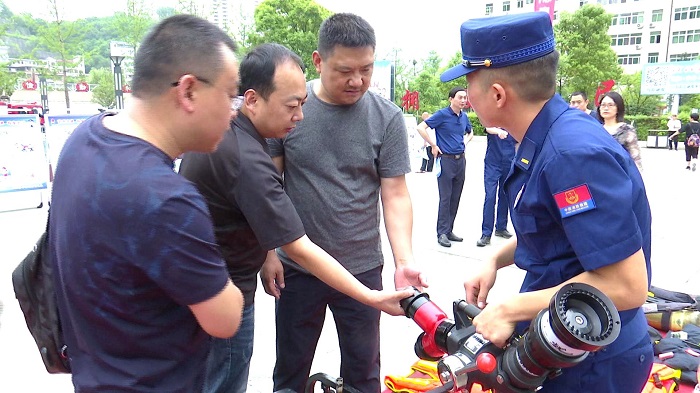 消防队员向市民展示消防救援设备