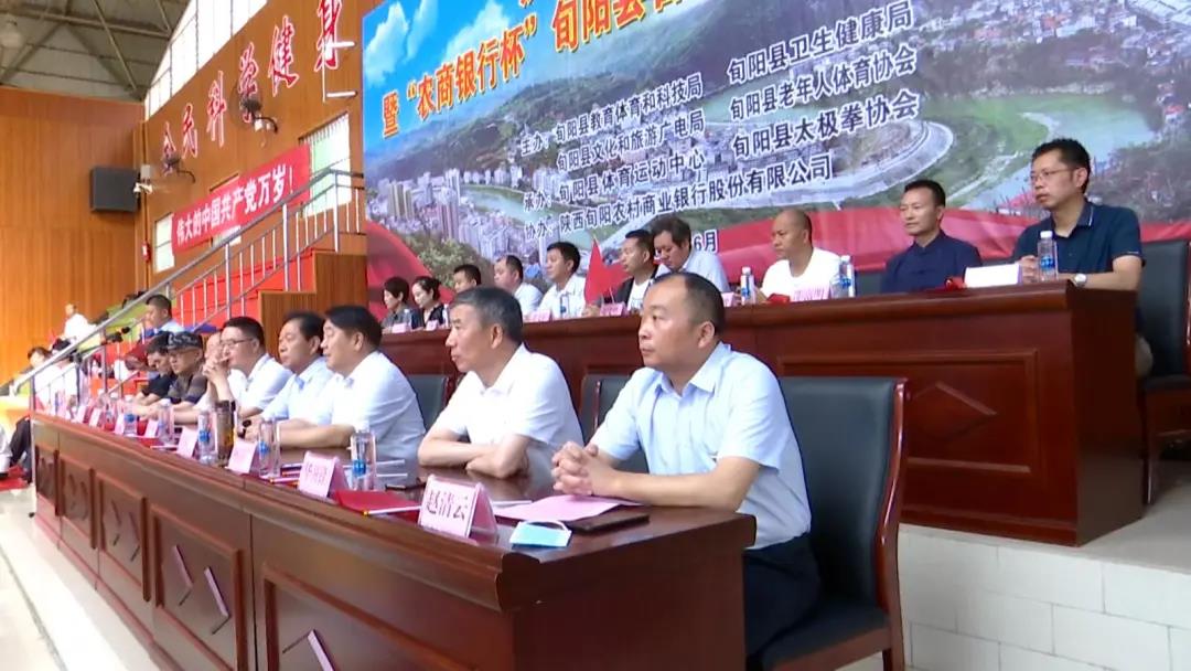 6月22日,庆祝中国共产党成立100周年暨“农商银行杯”旬阳县首届太极拳(剑)交流大赛在县城体育馆隆重开幕,县委副书记王武臣、县人大常委会副主任向敏毅、副县长杨居侨、县政协副主席华开锋等领导出席开幕式。