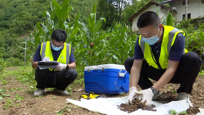 一大早,在小河镇张良村土壤汞污染治理项目钝化修复技术试验田里,监测员洪小超和同事正在对实验田里的土壤和植物进行样本采集,“我们采用四分法进行采样,采集表层土、中层土、深层土,同时对成熟植物果实进行采样。采完样品后我们及时运回实验室,进行分析,对后续张良村汞污染治理项目提供数据支撑”。