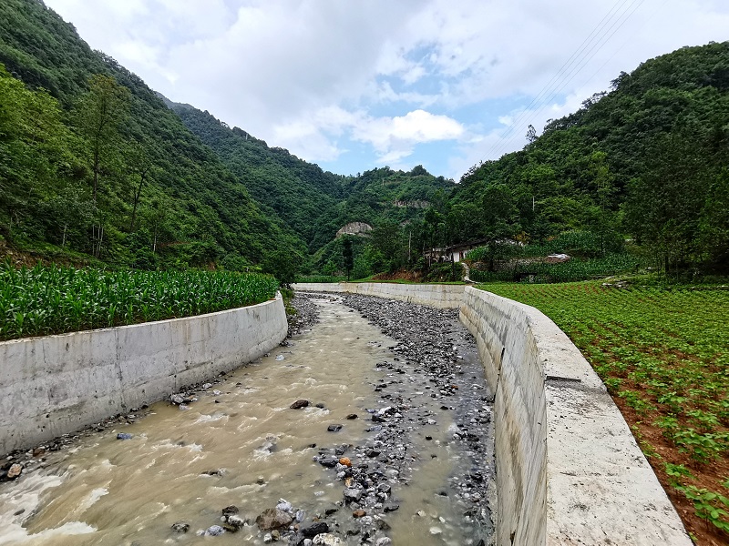 新修的防渗挡墙和两岸用客土法修复后种植的农作物