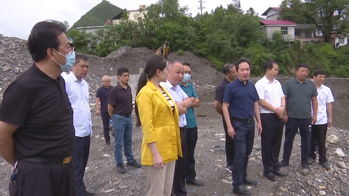 国家防办工作组在吕河镇敖院村检查河堤受灾和恢复建设情况