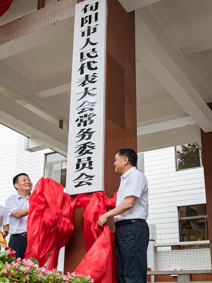 安康市人大常委会主任邹顺生、旬阳市人大常委会主任陈德智为“旬阳市人民代表大会常务委员会”揭牌