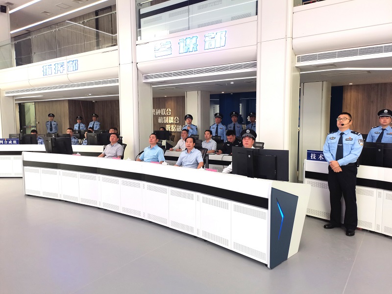 市委书记陈红星,市委副书记、代市长罗本军等领导在市公安局情指勤舆督一体实战中心观摩演练