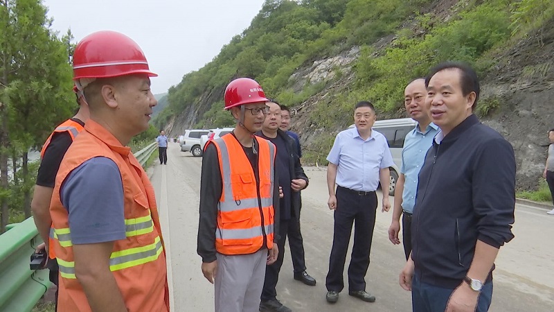罗本军在316国道构元段樊坡村水毁塌方点看望慰问施工人员