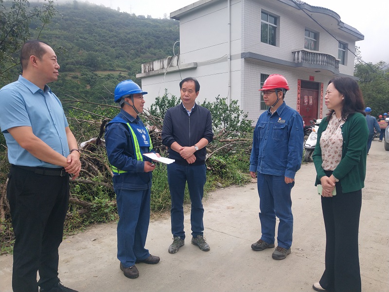 罗本军在城关镇乱滩沟村电力线路抢修施工工地查看了解抢修进度