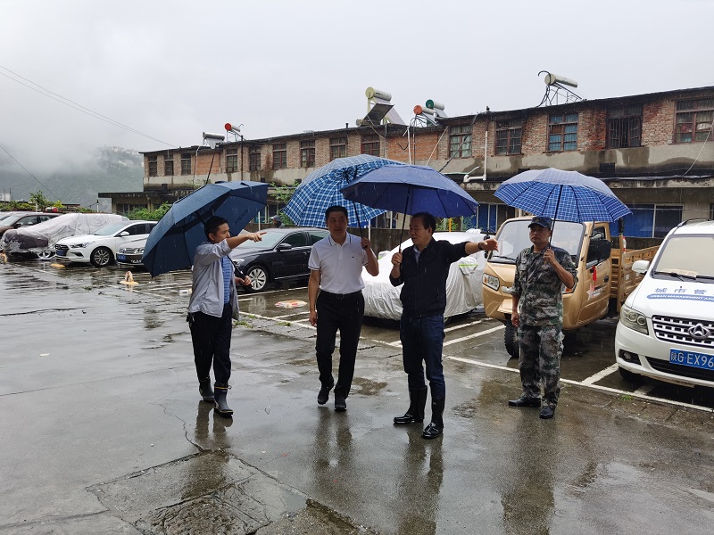 陈红星、罗本军在老城社区检查防汛救灾工作