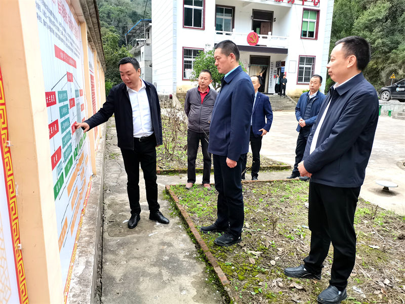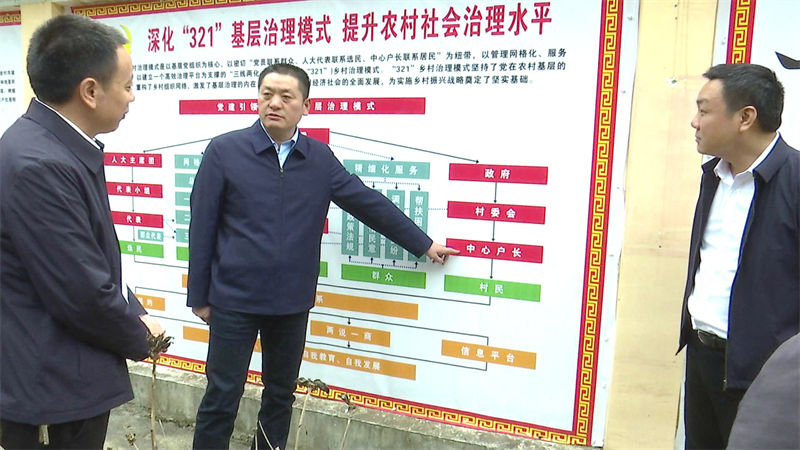陈红星(左二)在麻坪镇督导“321”基层治理模式推广实施工作