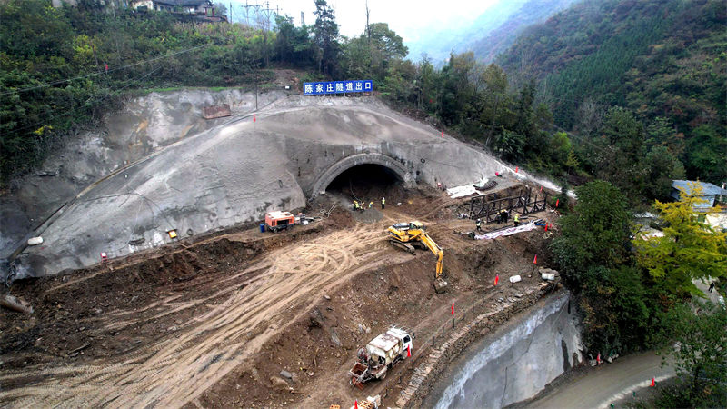 在西康高铁旬阳段桐木镇境内白杨坪隧道进口,现场工人们正在进行导向墙作业。桐木镇境内管线工程约8公里,主要建设陈家庄隧道、白杨坪隧道、桐木中沟桥梁等工程。截至10月底,负责桐木镇境内施工的6标段一工区所属隧道一队、二队、三队及一号智能混凝土拌合站、一号钢构件加工厂已经通过验收,陈家庄隧道进口、白杨坪隧道进口正在加紧组织进洞施工。“11月份、12月份,我们隧道计划进尺500米,我们正组织人员、设备加班加点,为完成年底的计划目标进行努力。”6标段一工区经理赵彦刚说道。