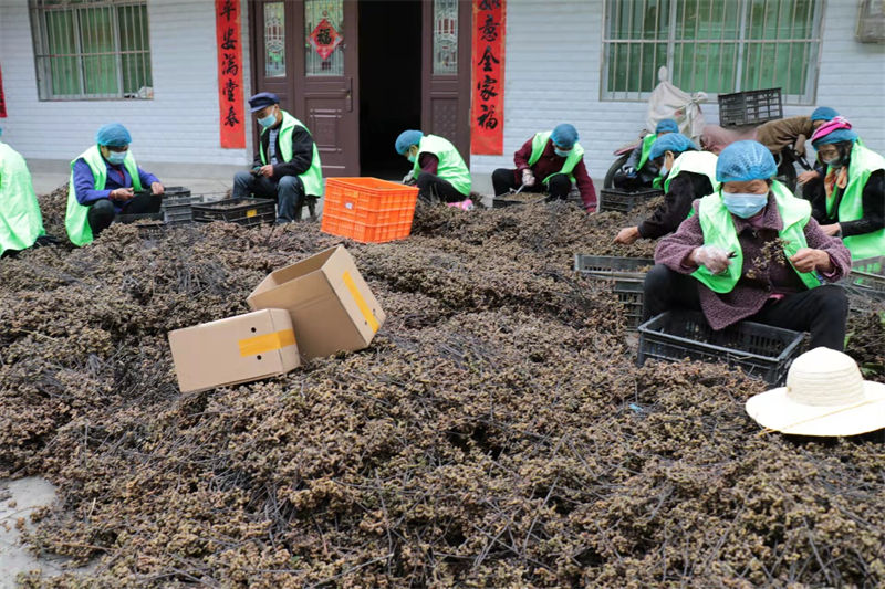 与会人员在吕河镇周家阳坡村观摩了拐枣现场收购情况