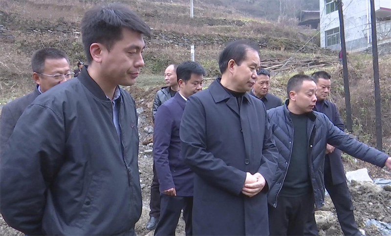 罗本军一行在麻坪镇实地查看西康高铁建设中的弃渣堆放情况