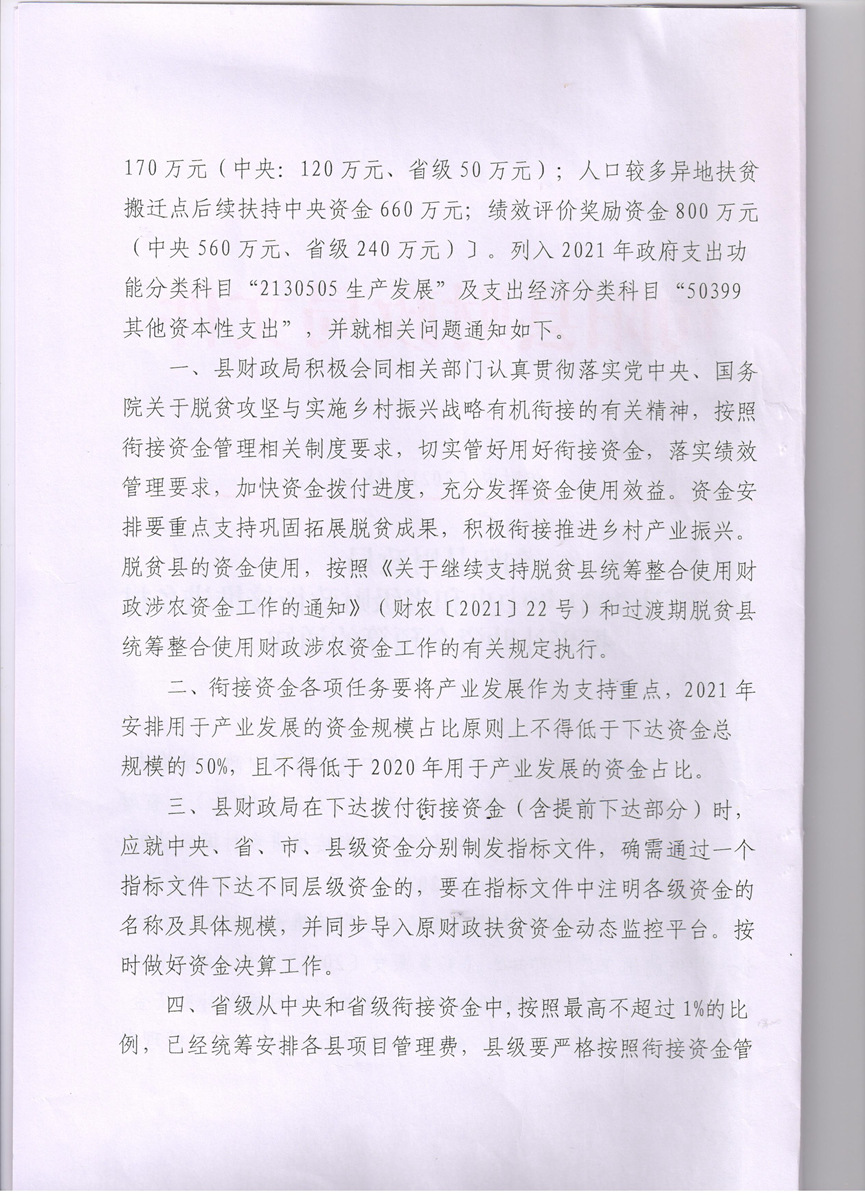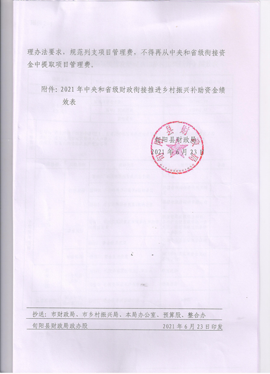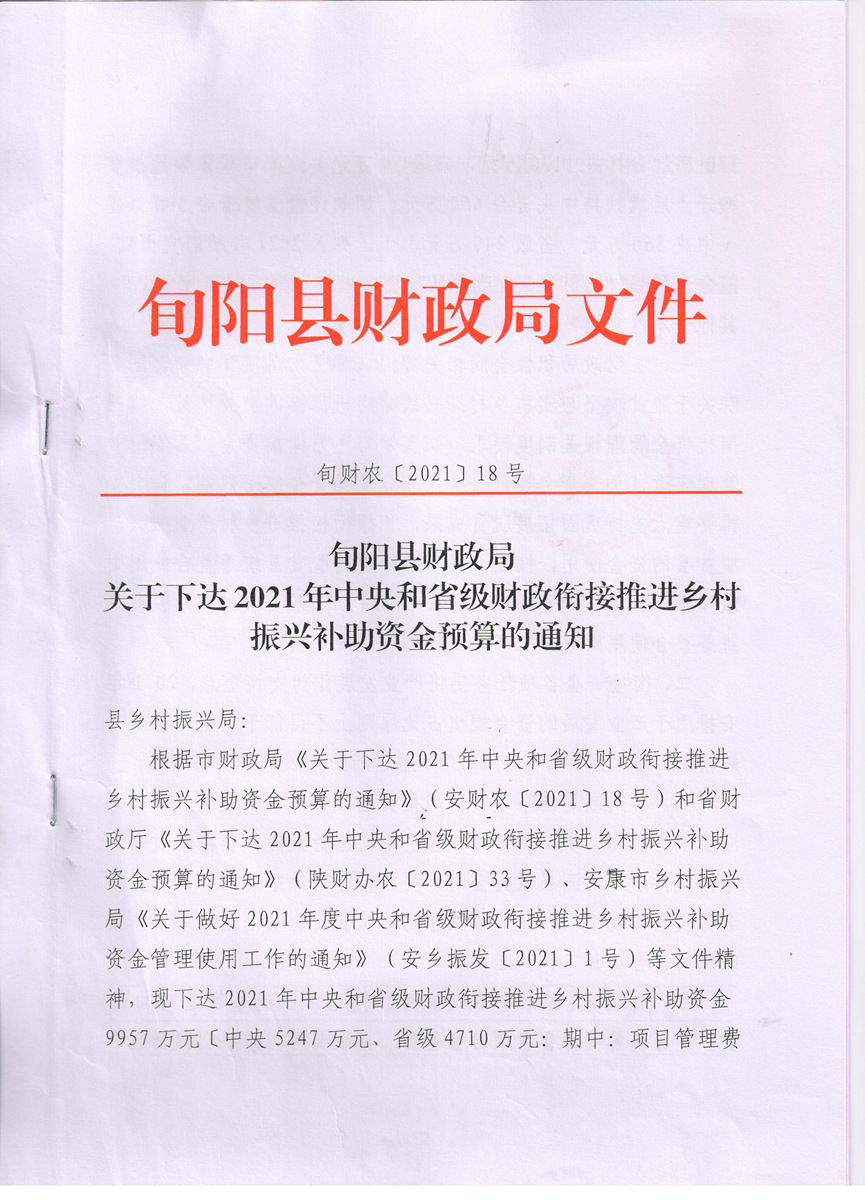 现将下达2021年中央和省级财政衔接推进乡村振兴补助资金预算的通知(旬财农[2021]18号)公告如下: