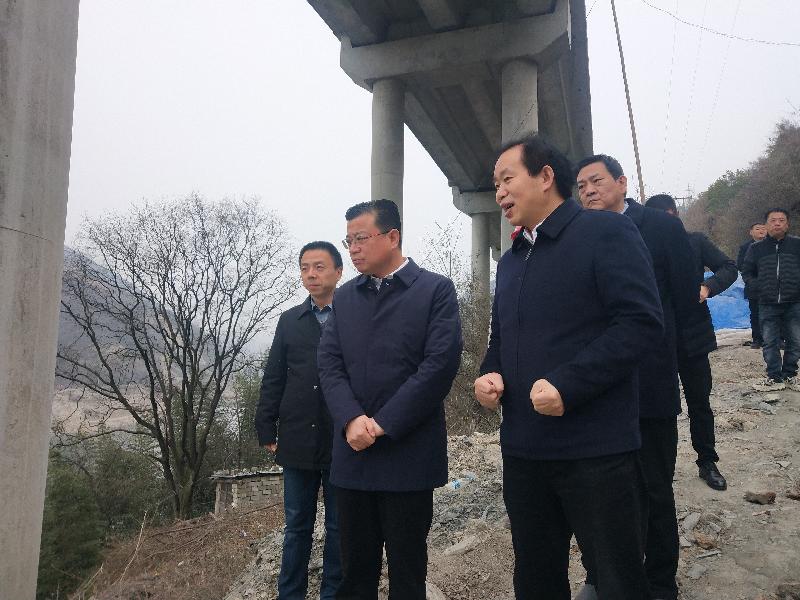 2月18日,安康市委常委、常务副市长高晶华到旬阳市督导协调十天高速旬阳LD连接线冬青高架桥灾后修复工作。旬阳市代市长罗本军、副市长张涛一同督导。