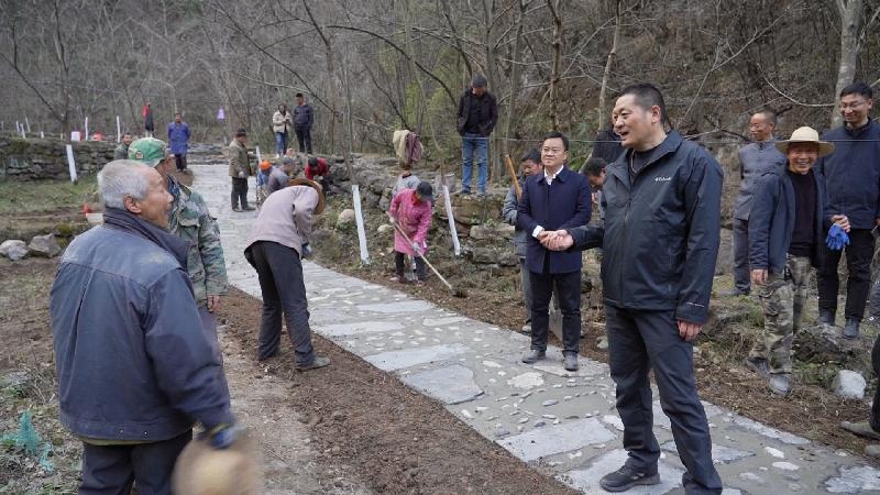 在马家村水洞沟穿眼山森林运动公园施工现场,双河镇人大代表陈守林带领35名村民义务参与项目建设,为家乡振兴贡献力量。陈红星走进群众当中,对他们的行动给予充分肯定和高度评价,并和乡亲们亲切交谈,问计于民,了解他们的所想所需所盼。