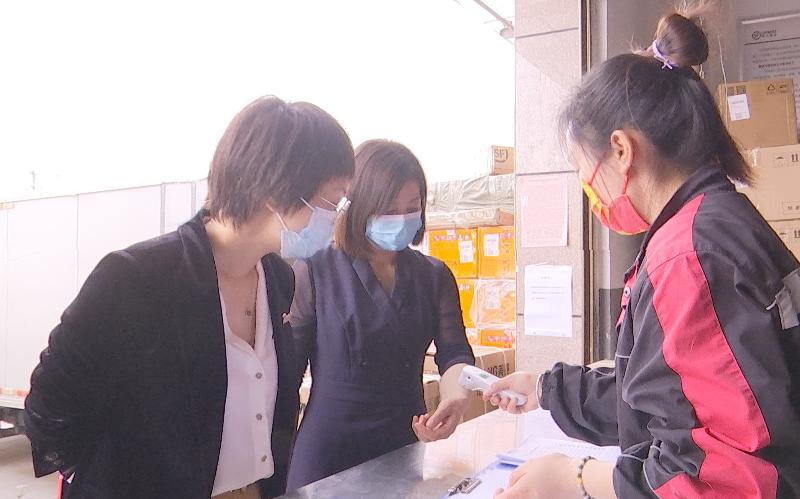 姚静(左一)、宋宗卉(右二)在鲁家坝快递园检查疫情防控工作