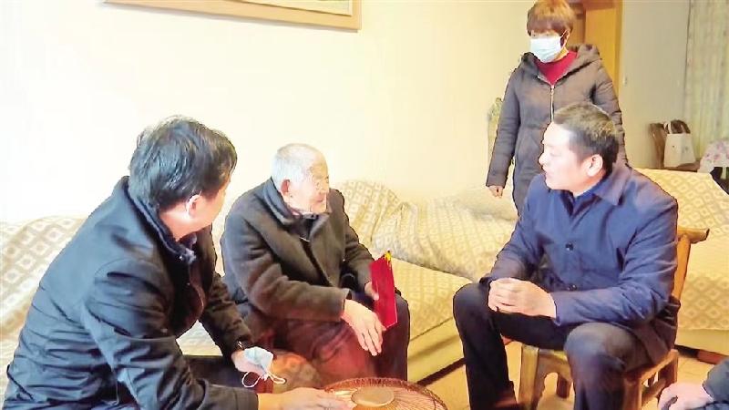 旬阳市委书记陈红星(右一)看望慰问抗美援朝老战士王明玉