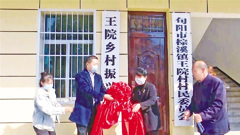 旬阳市委书记陈红星(左二)、安康市委党校常务副校长屈晓红为王院乡村振兴学堂揭牌