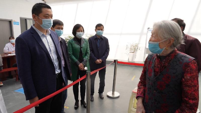 陈红星和接种疫苗的老人亲切交谈