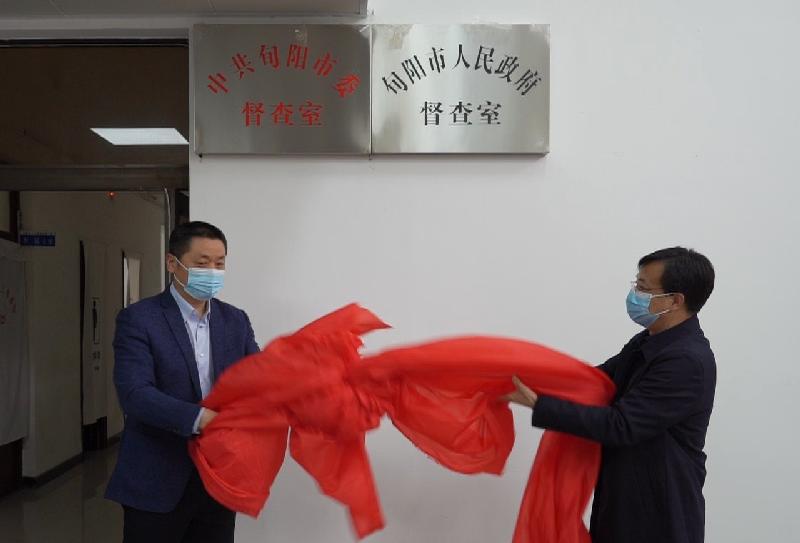 陈红星和柯昌斌为旬阳市委督查室(市政府督查室)揭牌