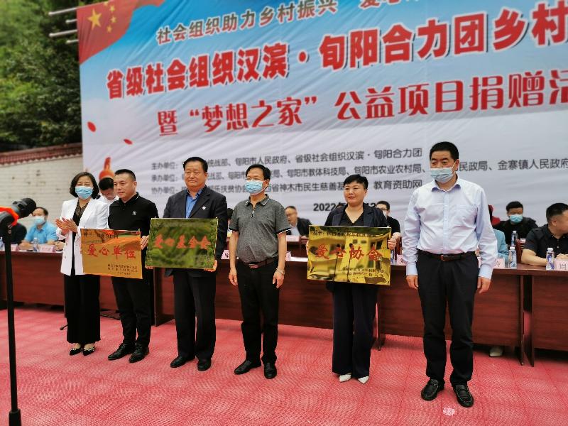5月13日,陕西省社会组织汉滨·旬阳合力团在旬阳市金寨镇举行乡村振兴帮扶暨“梦想之家”公益项目捐赠活动,安康市委统战部副部长、工商联党组书记陈友随,旬阳市委常委、统战部长许明武,副市长冯玲等领导出席活动并讲话,现场为各爱心单位、企业及爱心人士授牌并颁发证书。