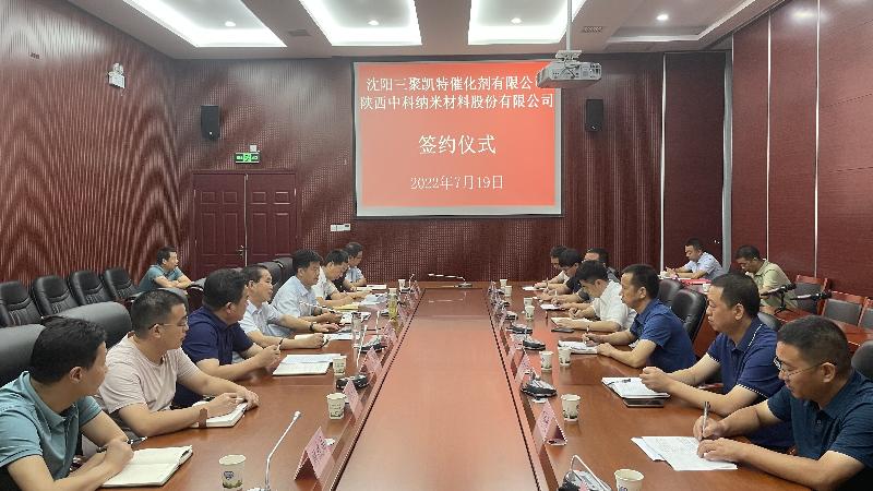 7月19日,陕西中科纳米材料股份有限公司与沈阳三聚凯特催化剂有限公司成功签订战略合作协议。市长罗本军、副市长沈纪兵、高新区管委会主任牛全鸿出席签约仪式。