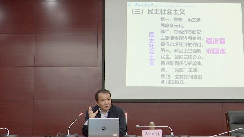 郝保权在会上作《当前意识形态领域风险挑战和维护意识形态安全的应对之策》专题授课,从意识形态安全与意识形态工作的极端重要性、典型案例与引发思考、当前社会思潮与我国意识形态领域形势,以及新形势下保障社会主义意识形态安全的战略应对等四个方面进行了全面系统的讲解。