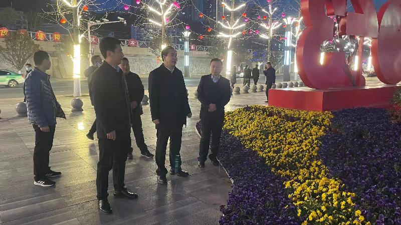 2月24日晚,市长罗本军深入市中心城区实地检查指导城市建设管理工作,副市长宋宗卉、向甲锋一同督导。