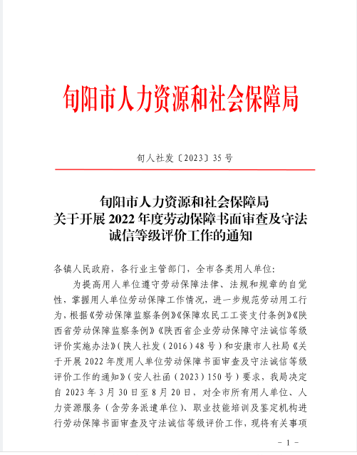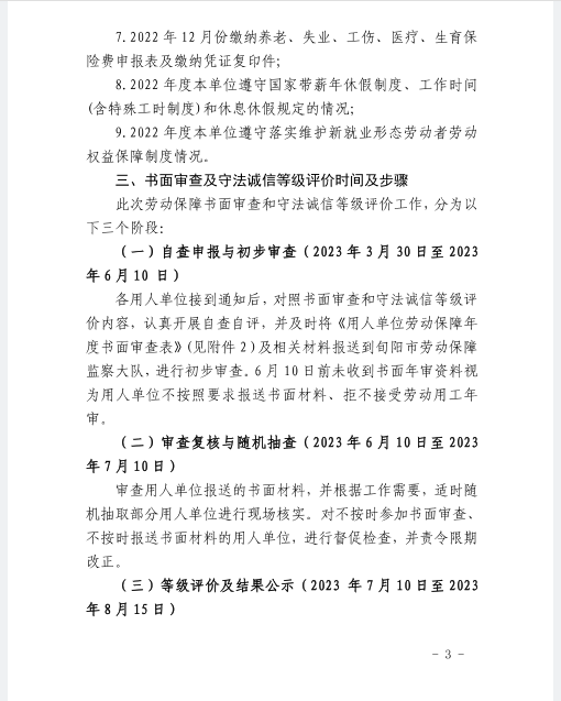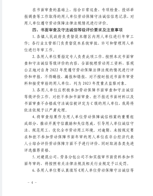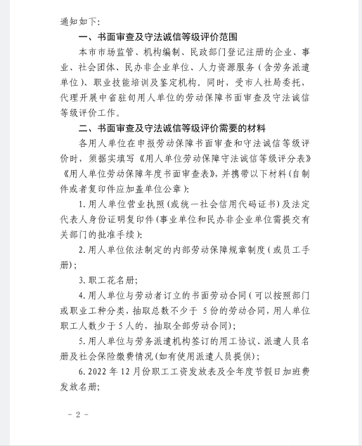 关于开展2022年度劳动保障书面审查及守法诚信等级评价工作的通知