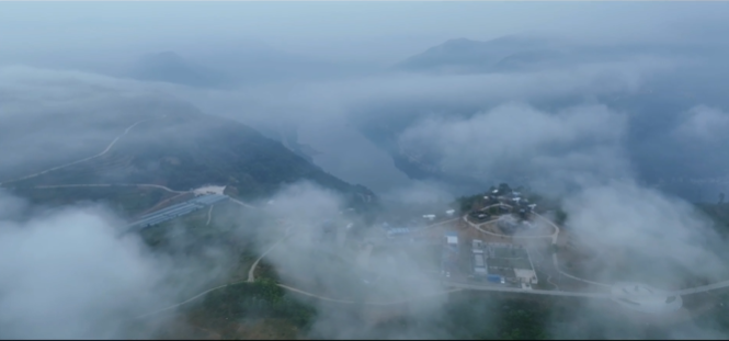 登上山头,向高处望去,满山绿色随着一个个起伏平缓的山丘,向四周山峰间隙的天际延伸,云海翻涌,天空低得触手可及。