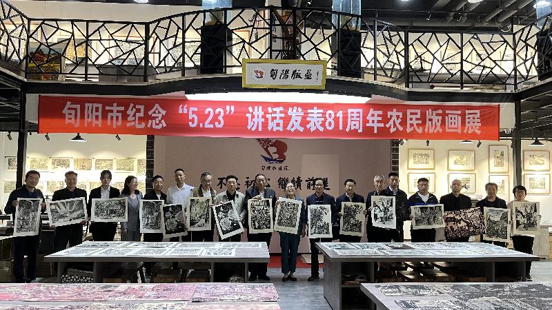 会后,文艺工作者们在旬阳市版画院参观农民版画展。