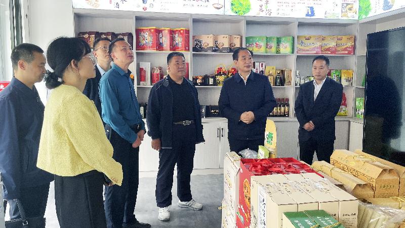 5月24日,市长罗本军带领市政府办、经贸局、市场监管局、林业局等部门负责人检查指导旬阳市拐枣产品旗舰店运营筹备工作。