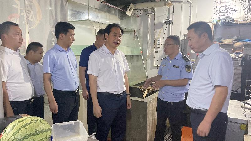 9月1日,市长罗本军带领市城管执法局、卫健局、市场监管局、疾控中心等部门负责人督导检查国家卫生城市创建及病媒生物防制工作。市人大常委会副主任柳康、副市长向甲锋一同检查。