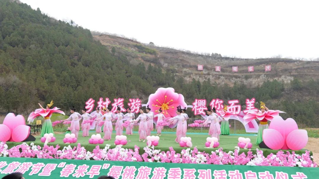在优美的舞蹈带动下,启动仪式正式开始。《樱花仙子》《幸福欢歌》《樱花树下》等表演让漫山的樱桃花海更添无限韵味,“拉满”春日氛围感。以花为媒、以节会友,本次活动以“乡村旅游·樱您而美”为主题,将持续至3月17日,相继有秦巴特产展销、特色美食体验、文艺采风、文化志愿服务、游园赏花等系列活动,让广大游客在沐春风、赏花海、游乡村、品佳肴中共同开启樱桃花季的春天浪漫之旅。