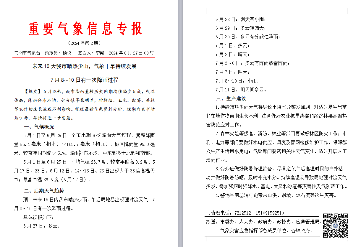 重要气象信息专报