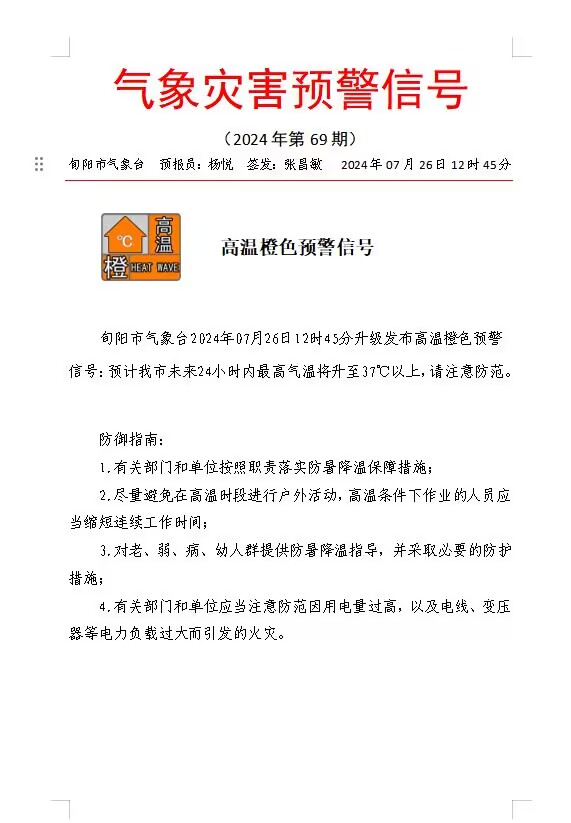 高温橙色预警信号