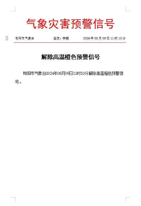 解除高温橙色预警信号