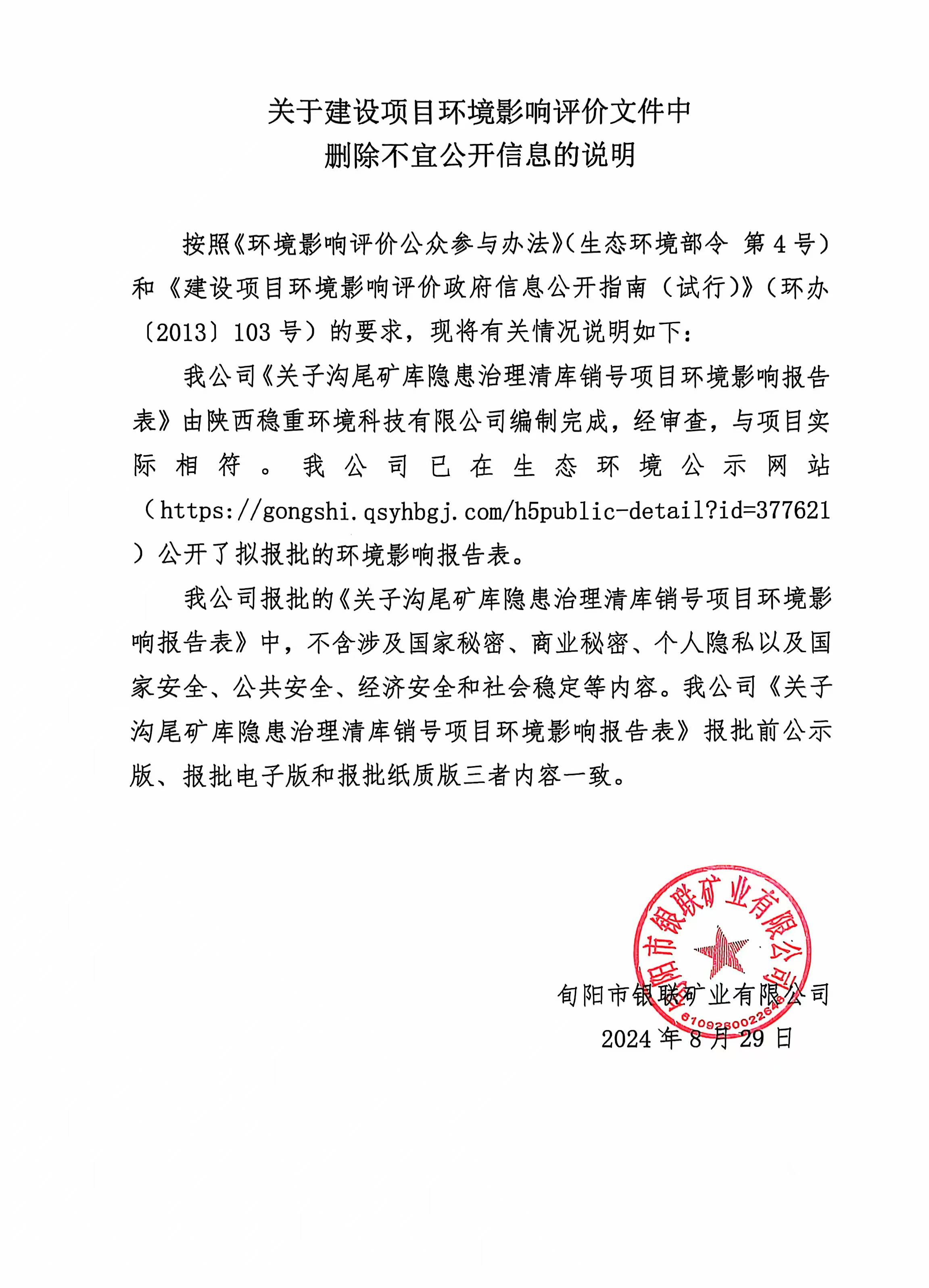 根据建设项目环境影响评价审批程序的有关规定,经审查,我局对《关子沟尾矿库隐患治理清库销号项目》《旬阳市中医医院迁建项目》《旬阳市昌运达建筑工程有限公司建筑用石加工项目》《旬阳市利之隆工贸有限公司建筑用石加工项目》《旬阳市智恒工贸有限公司建筑用石加工项目》《旬阳县人和康茂工程劳务有限公司建筑用石加工项目》《旬阳县双惠工程建设有限公司建筑用石加工项目》《旬阳县赵湾镇砂石料厂建筑用石加工项目》《陕西乾旬劳务有限公司年产10万吨砂石料建设项目》《旬阳县季坪工贸有限公司年产3.0万吨砂石料建设项目》《旬阳县晶瑞工贸有限公司年产3万吨砂石料建设项目》的11个环评报告表作出受理及拟作出审批意见。为保证此次审查工作的严肃性和公正性,现将受理及拟作出审批意见的环境影响评价文件基本情况及报告全文予以公示,公示期为2024年9月18日-2024年9月24日(5个工作日)。