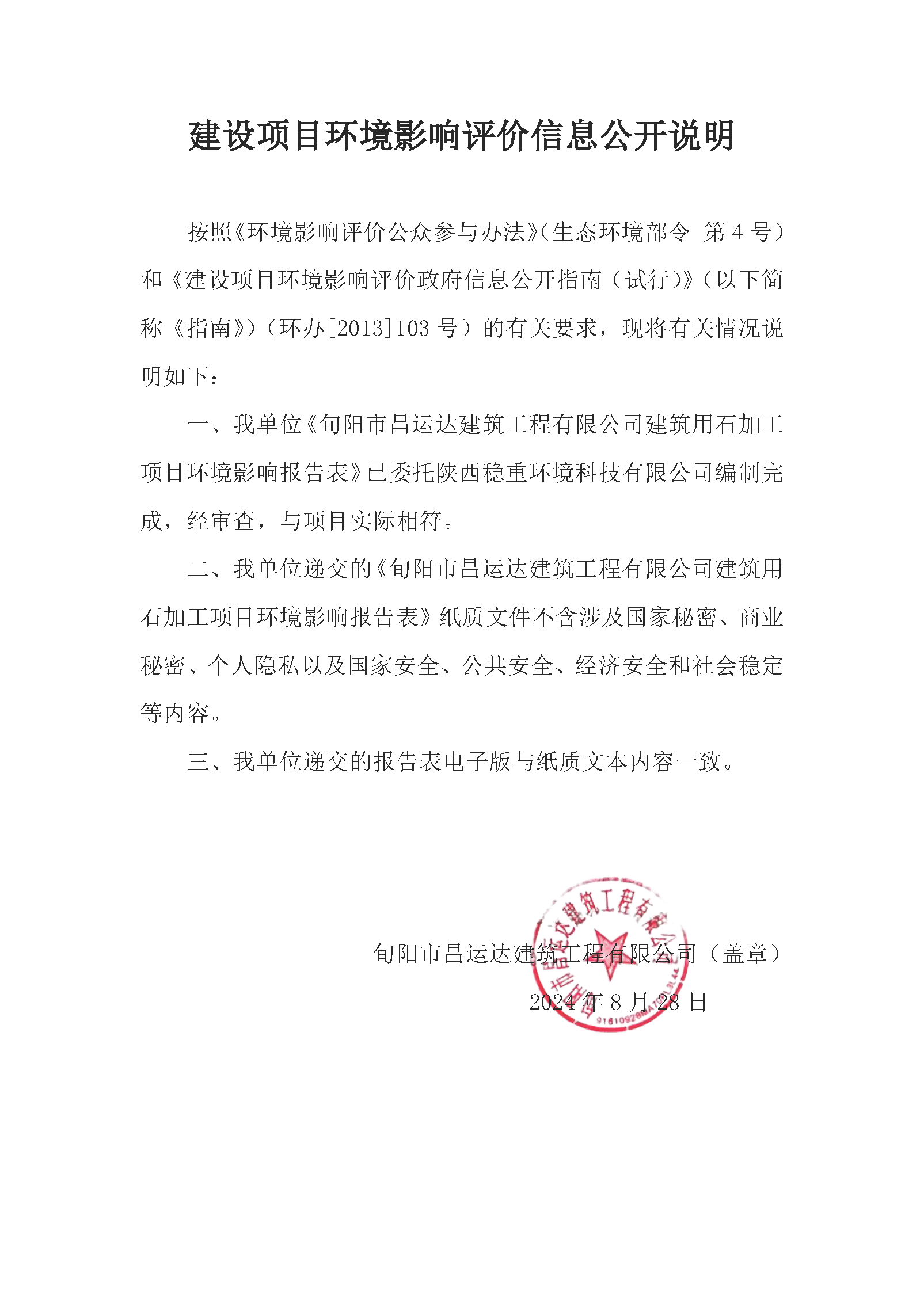 旬阳市昌运达建筑工程有限公司建筑用石加工项目 |