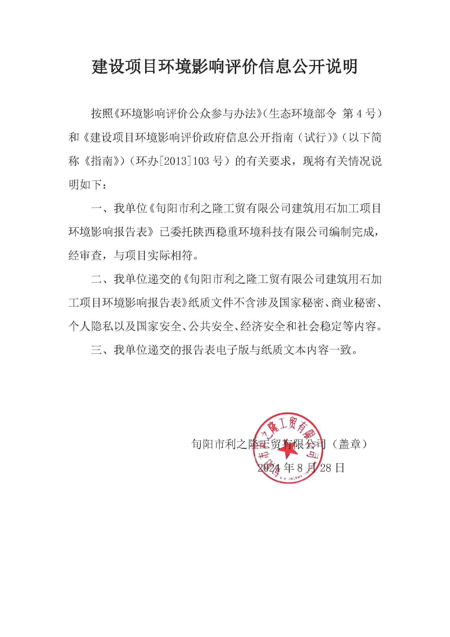 旬阳市利之隆工贸有限公司建筑用石加工项目 |