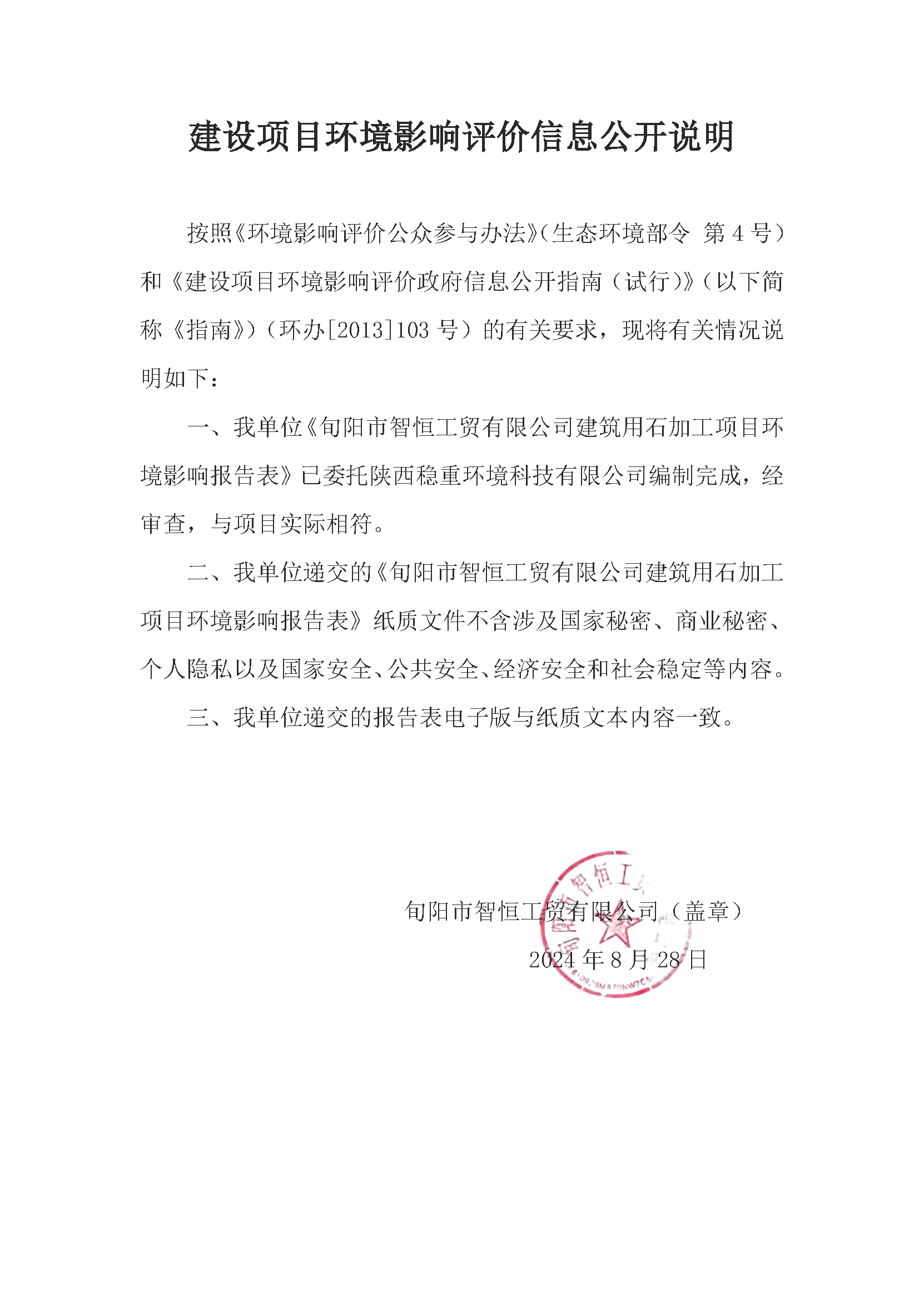 旬阳市智恒工贸有限公司建筑用石加工项目 |