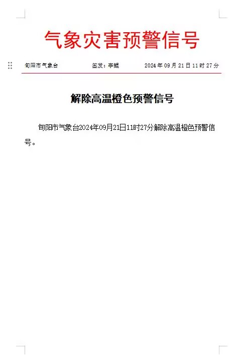 解除高温橙色预警信号