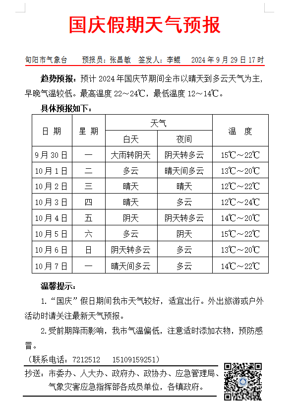 国庆假期天气预报